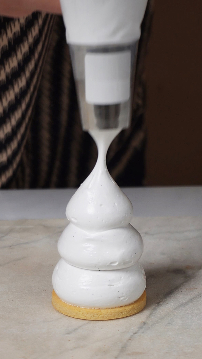 Sprøjt marengs på dine bunde og lad dem sætte sig i en times tid, så skummet har tid til at hæfte på bundene.